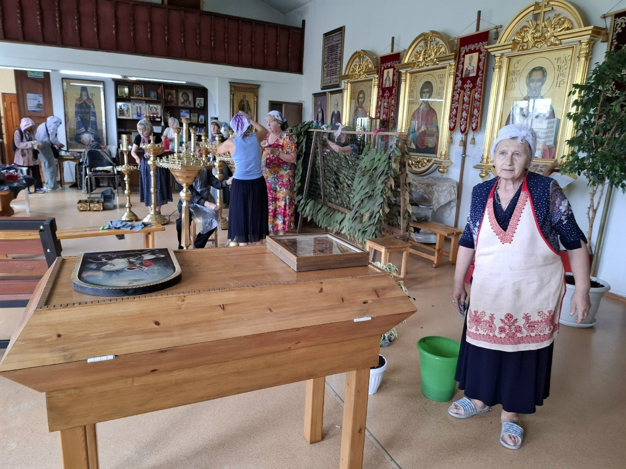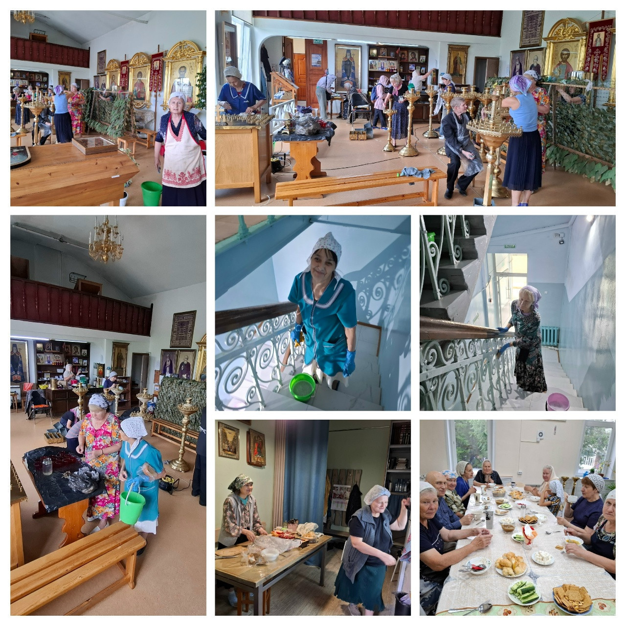 15 августа активные прихожане собрались для проведения генеральной уборки храма. Начистили подсвечники, помыли окна, протёрли иконы от пыли. По окончании уборки всех ждал вкусный обед.